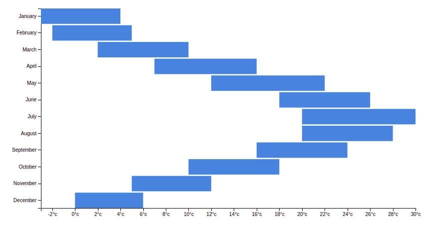 Online linkShowing Floating Bar Chart - Temperature across year monthwise in D3 js