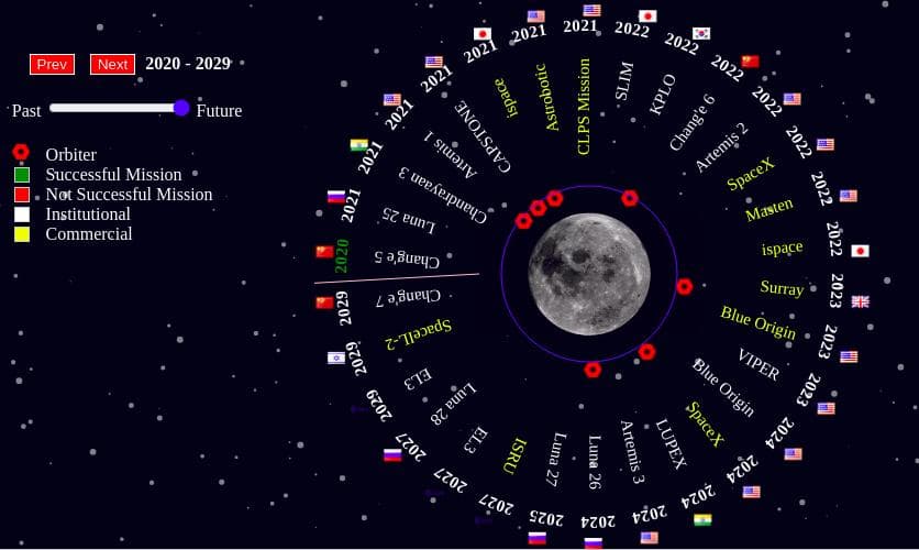 Online linkShowing all moon/lunar mission by various country around the world with time line in D3 js